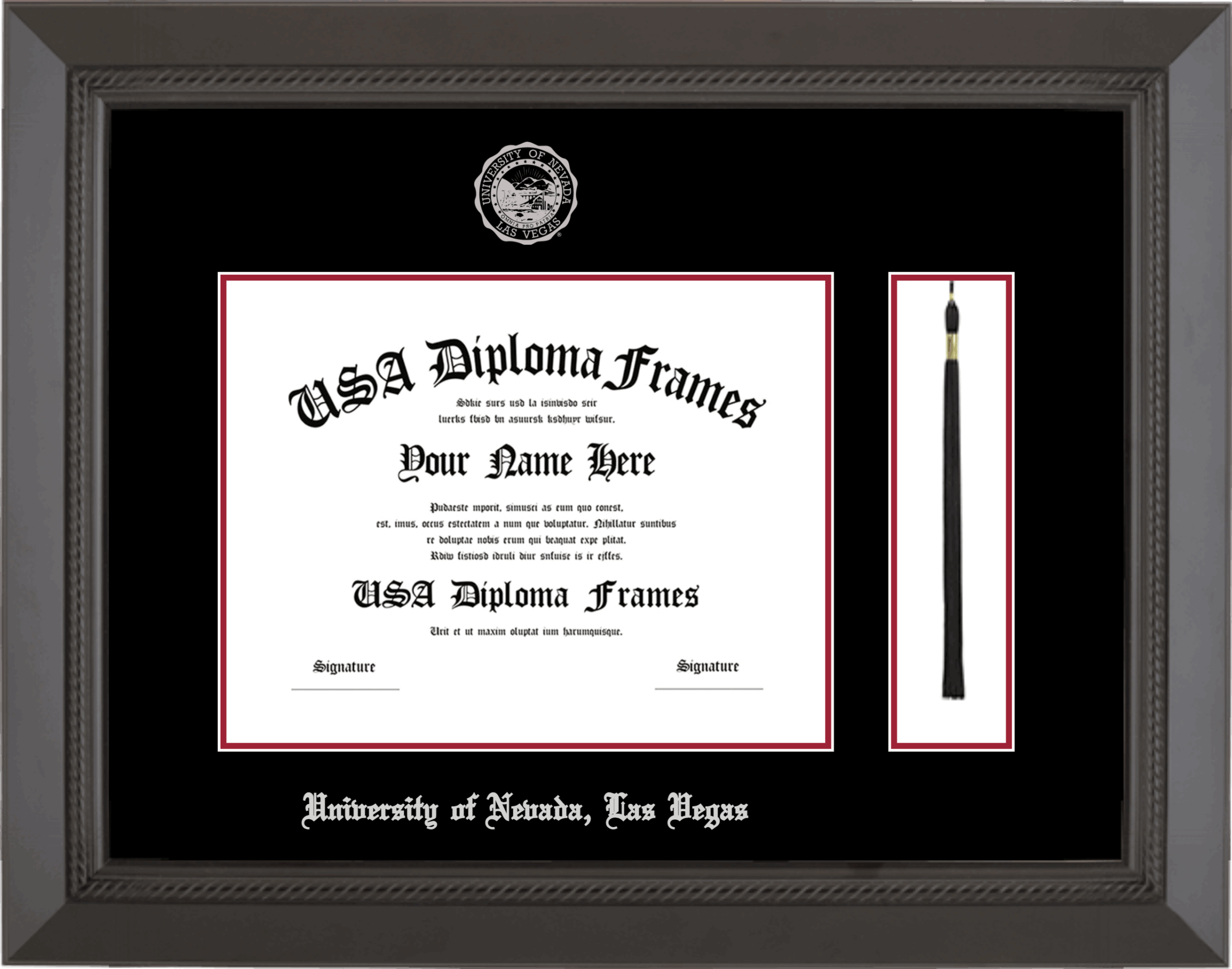 University of Nevada, Las Vegas Diploma Frame with Tassel – Black Rope – Black and Crimson Mat