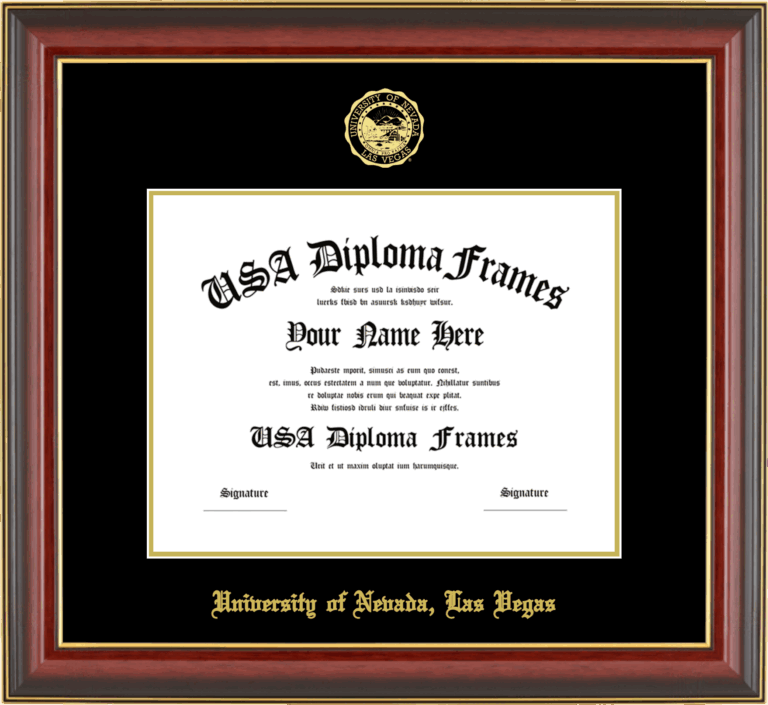 University of Nevada, Las Vegas Diploma Frame – UNLV Diploma Frame – Cherry Mahogany Gold Trim Glossy – Black and Gold Mat