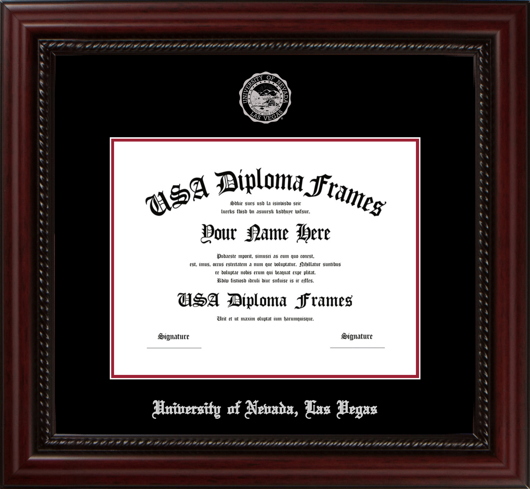 University of Nevada, Las Vegas Diploma Frame – UNLV Diploma Frame – Executive Cherry Rope – Black and Crimson Mat