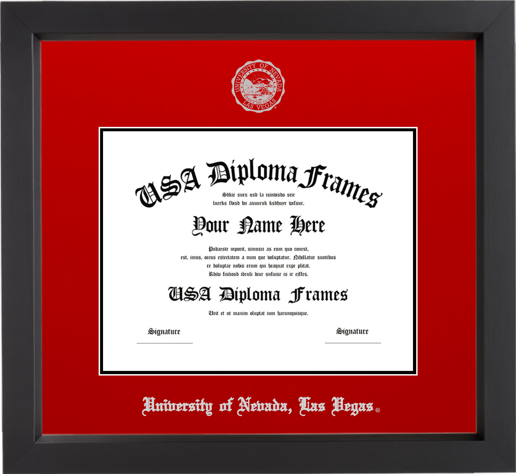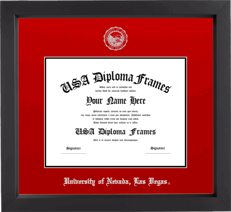 University of Nevada, Las Vegas Diploma Frame – UNLV – Black Matte – Red and Black Mat – Silver Seal