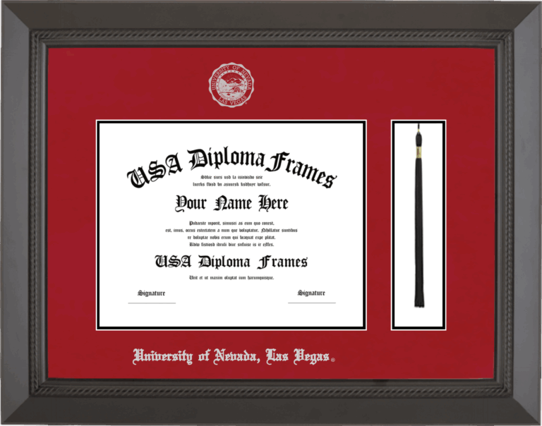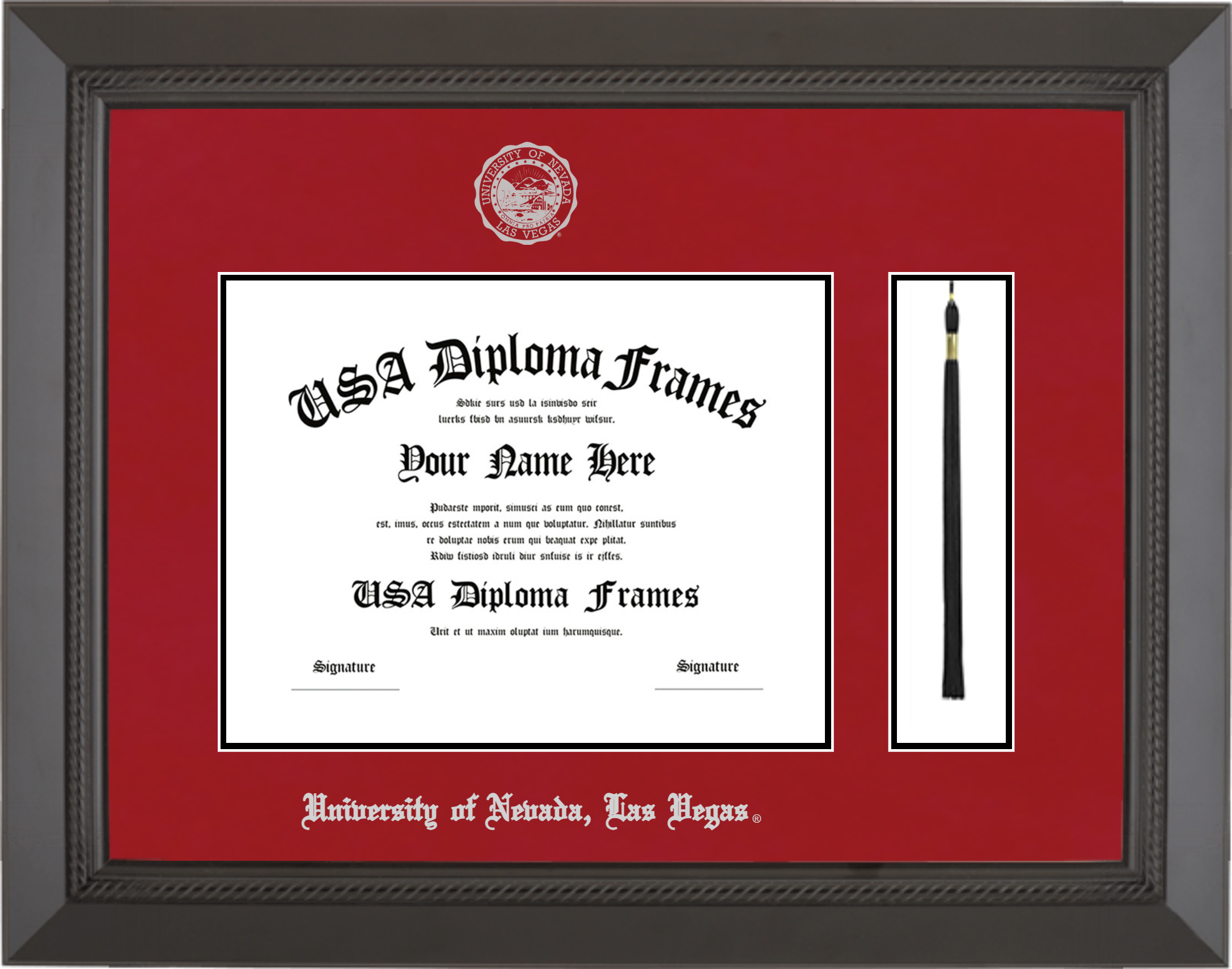 University of Nevada, Las Vegas Diploma Frame – UNLV – Black Rope – Crimson and Black Mat – Silver Seal
