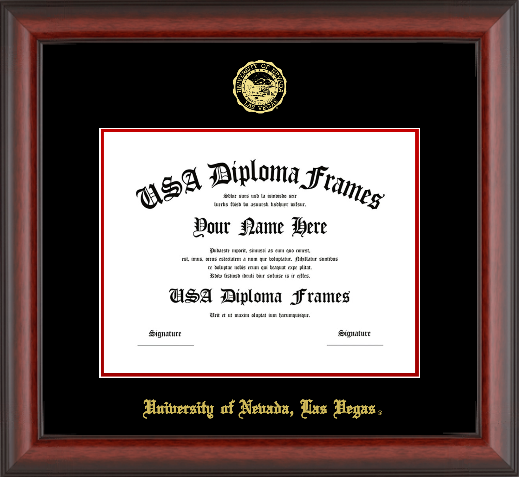 University of Nevada, Las Vegas Diploma Frame – UNLV – Cherry Mahogany Matte – Black and Red Mat