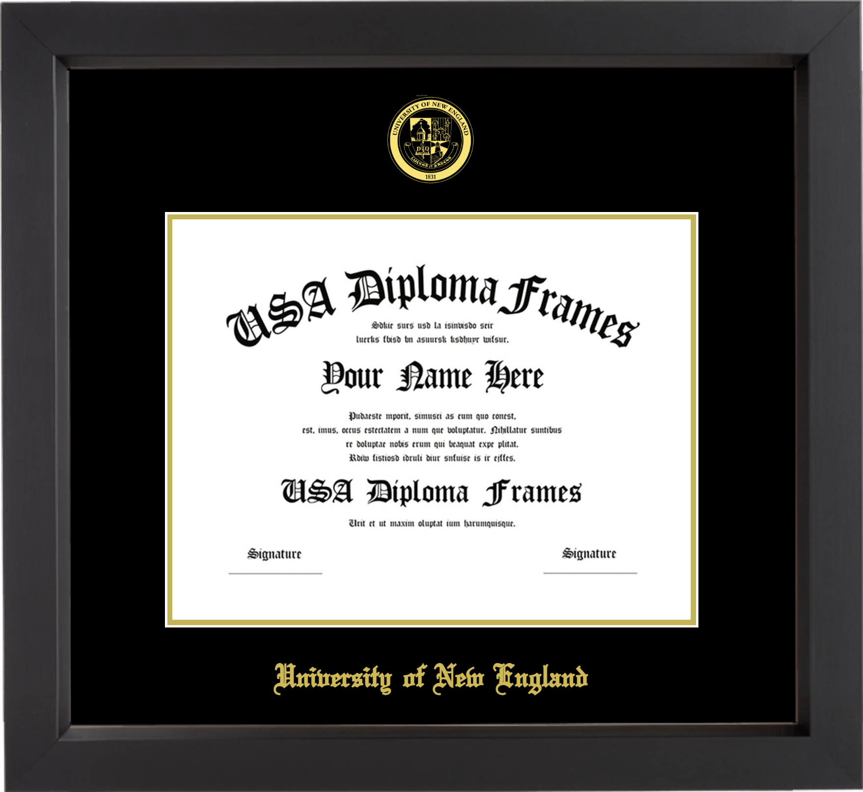 University of New England Diploma Frame – Black Matte – Black and Gold Mat