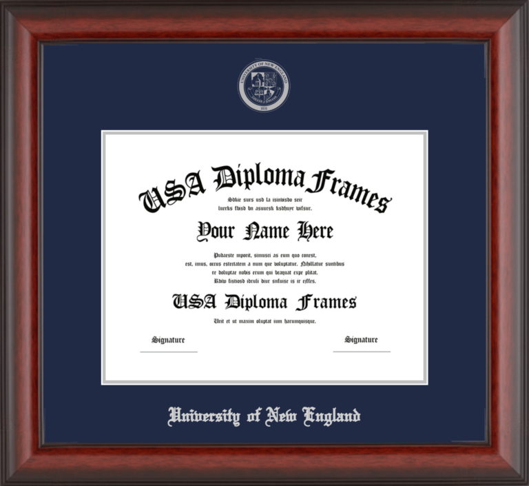Want to explore more styles? Browse our full range of diploma frame layouts, or visit the University of New England to view options available for your school. Looking for a fully personalized design? Try our custom Frame Builder and create a frame that’s uniquely yours.