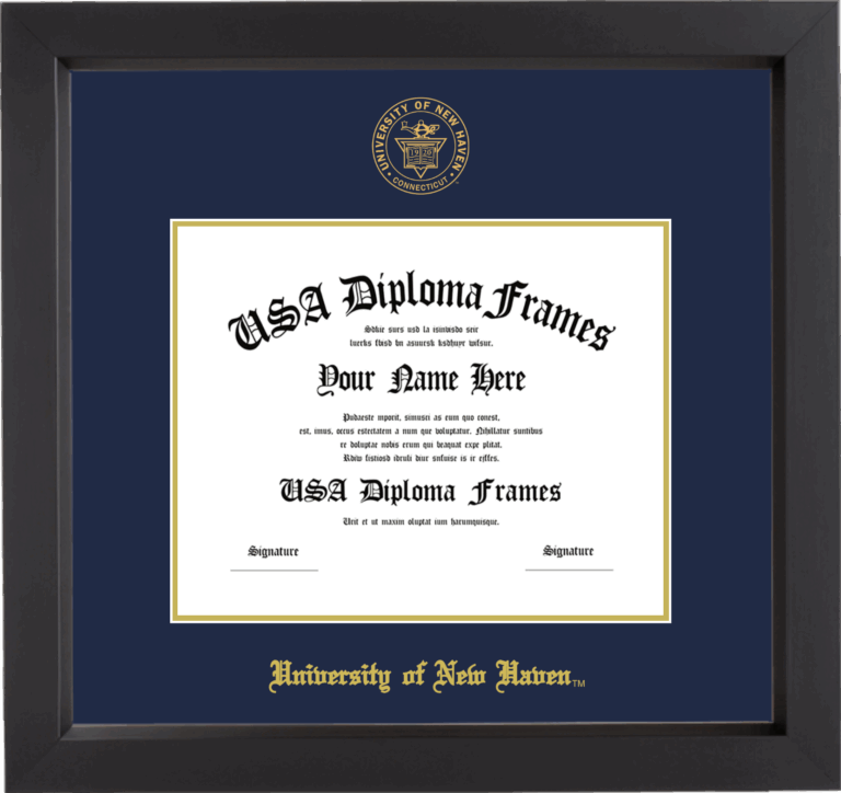 University of New Haven Diploma Frame – Black Matte – Navy and Gold Mat