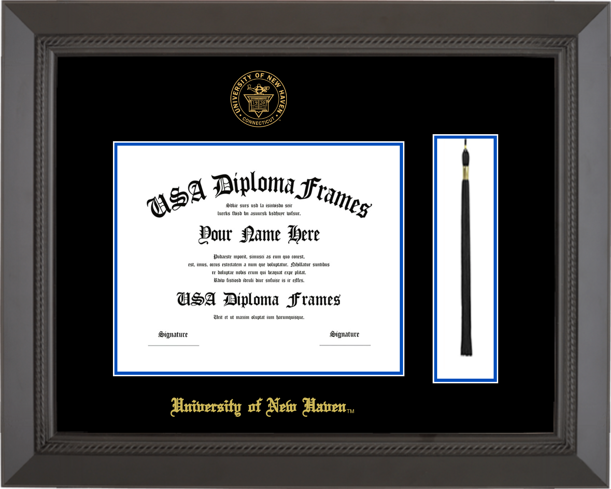 University of New Haven Diploma Frame with Tassel – Black Rope – Black and Royal Blue Mat