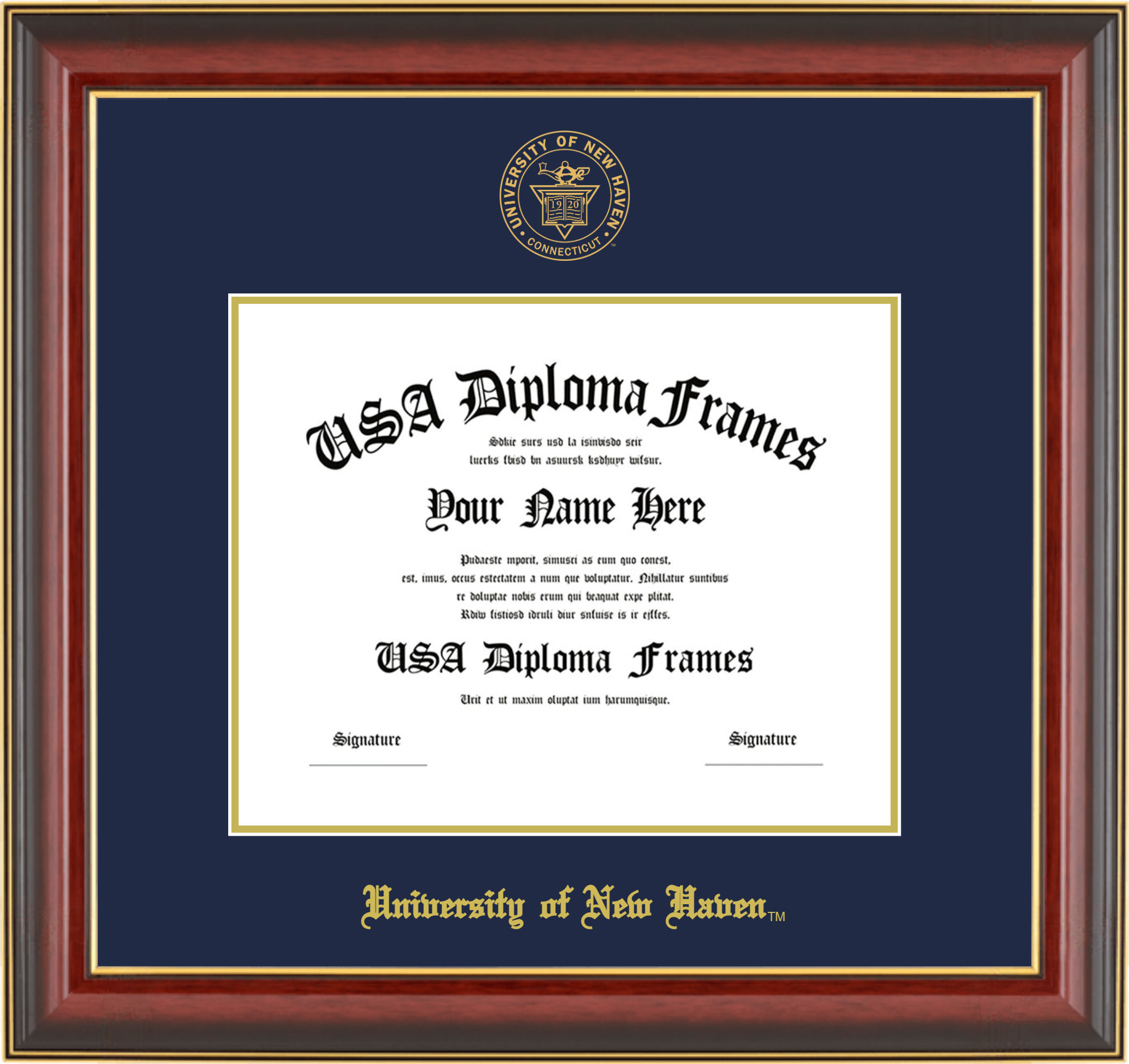 Want to explore more styles? Browse our full range of diploma frame layouts, or visit the University of New Haven to view options available for your school. Looking for a fully personalized design? Try our custom Frame Builder and create a frame that’s uniquely yours.