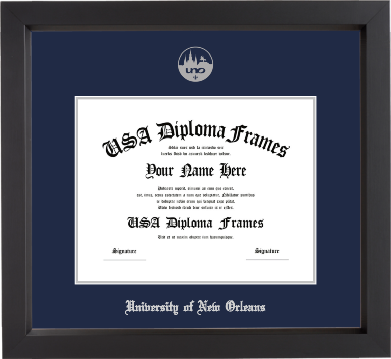 Want to explore more styles? Browse our full range of diploma frame layouts, or visit the University of New Orleans to view options available for your school. Looking for a fully personalized design? Try our custom Frame Builder and create a frame that’s uniquely yours.