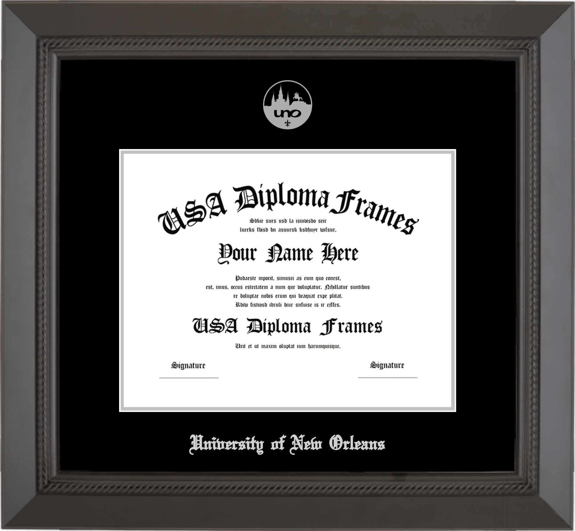 University of New Orleans Diploma Frame – Black Rope – Black and Silver Mat