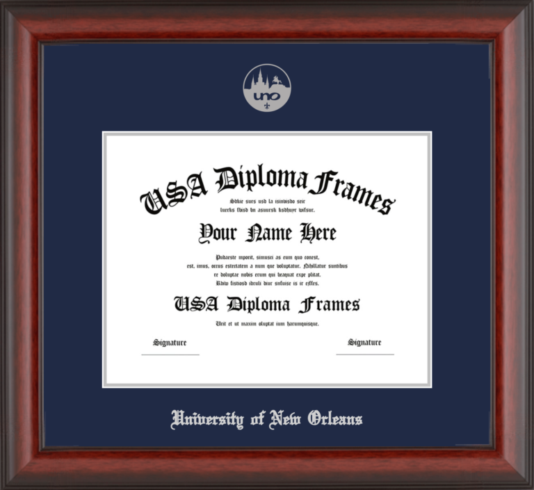 Want to explore more styles? Browse our full range of diploma frame layouts, or visit the University of New Orleans to view options available for your school. Looking for a fully personalized design? Try our custom Frame Builder and create a frame that’s uniquely yours.