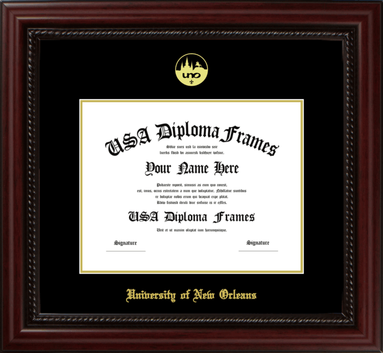 Want to explore more styles? Browse our full range of diploma frame layouts, or visit the University of New Orleans to view options available for your school. Looking for a fully personalized design? Try our custom Frame Builder and create a frame that’s uniquely yours.
