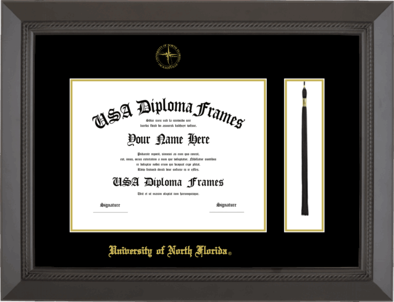 University of North Florida Diploma Frame with Tassel – Bachelors 8.5×11 – Black Rope – Black and Gold Mat
