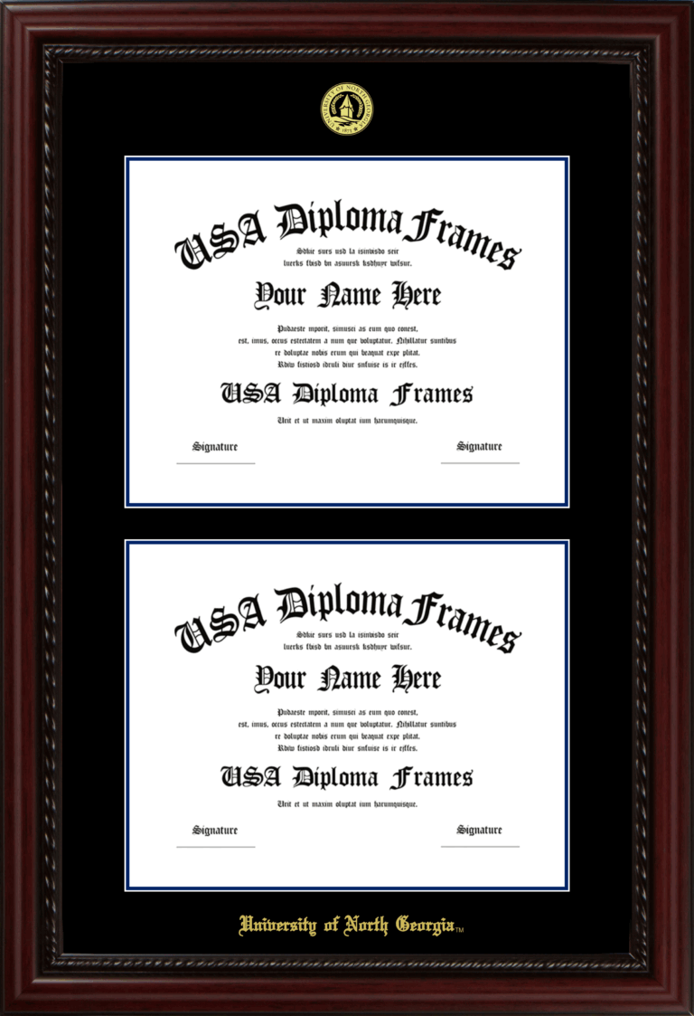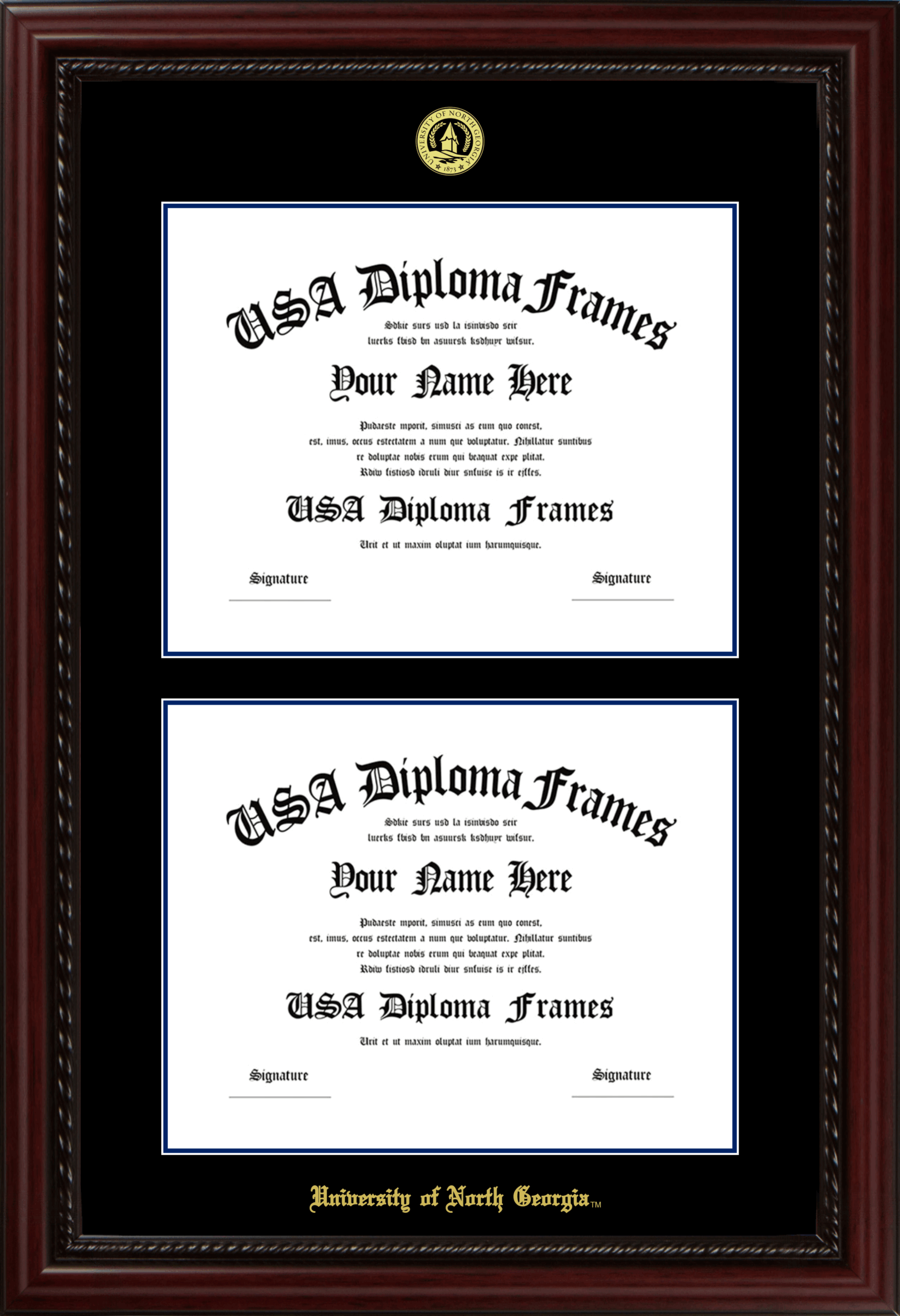 University of North Georgia Double Diploma Frame – Double Document – Executive Cherry Rope – Black and Navy Mat