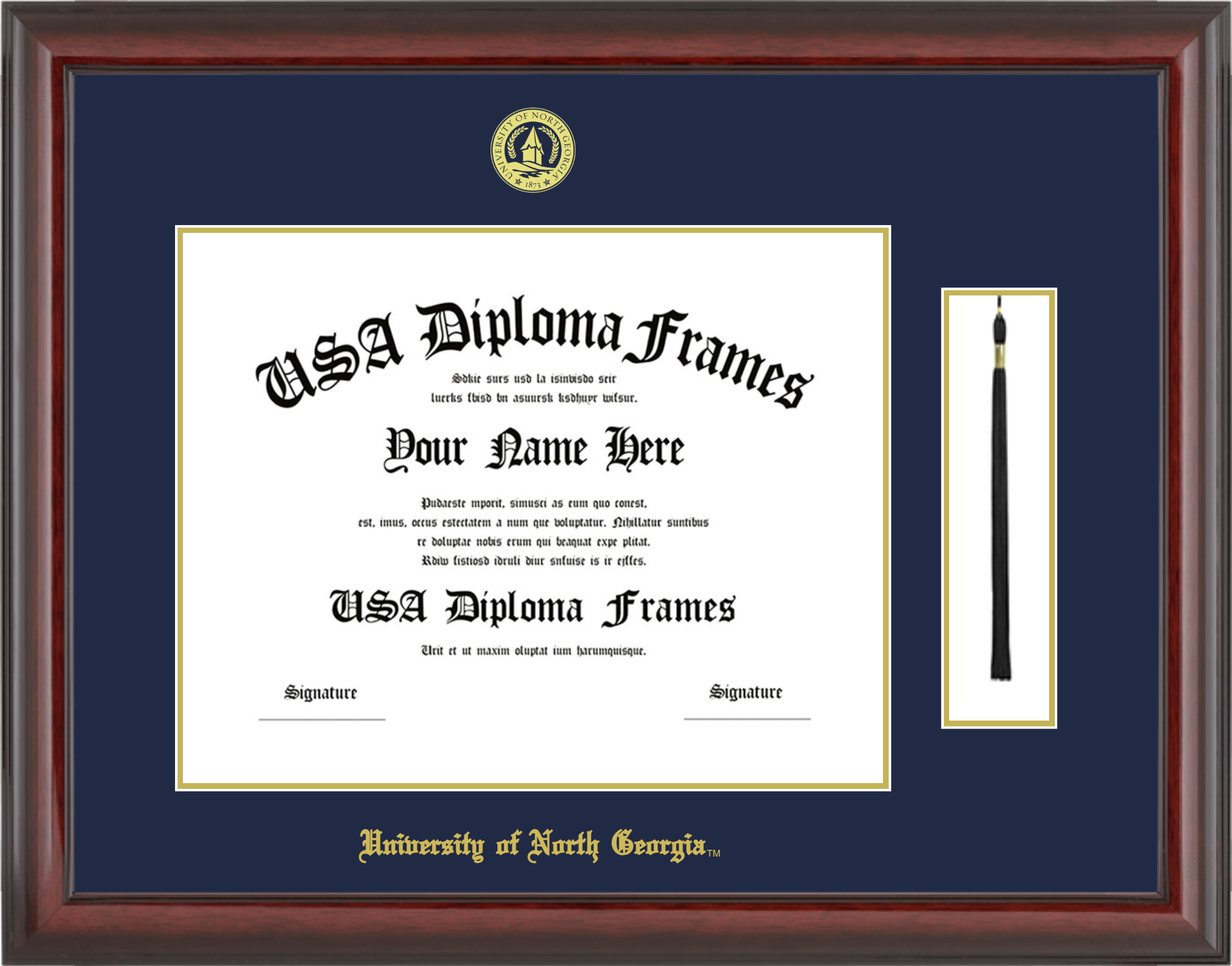 University of North Georgia Diploma Frame with Tassel – Cherry Mahogany Glossy – Navy and Gold Mat