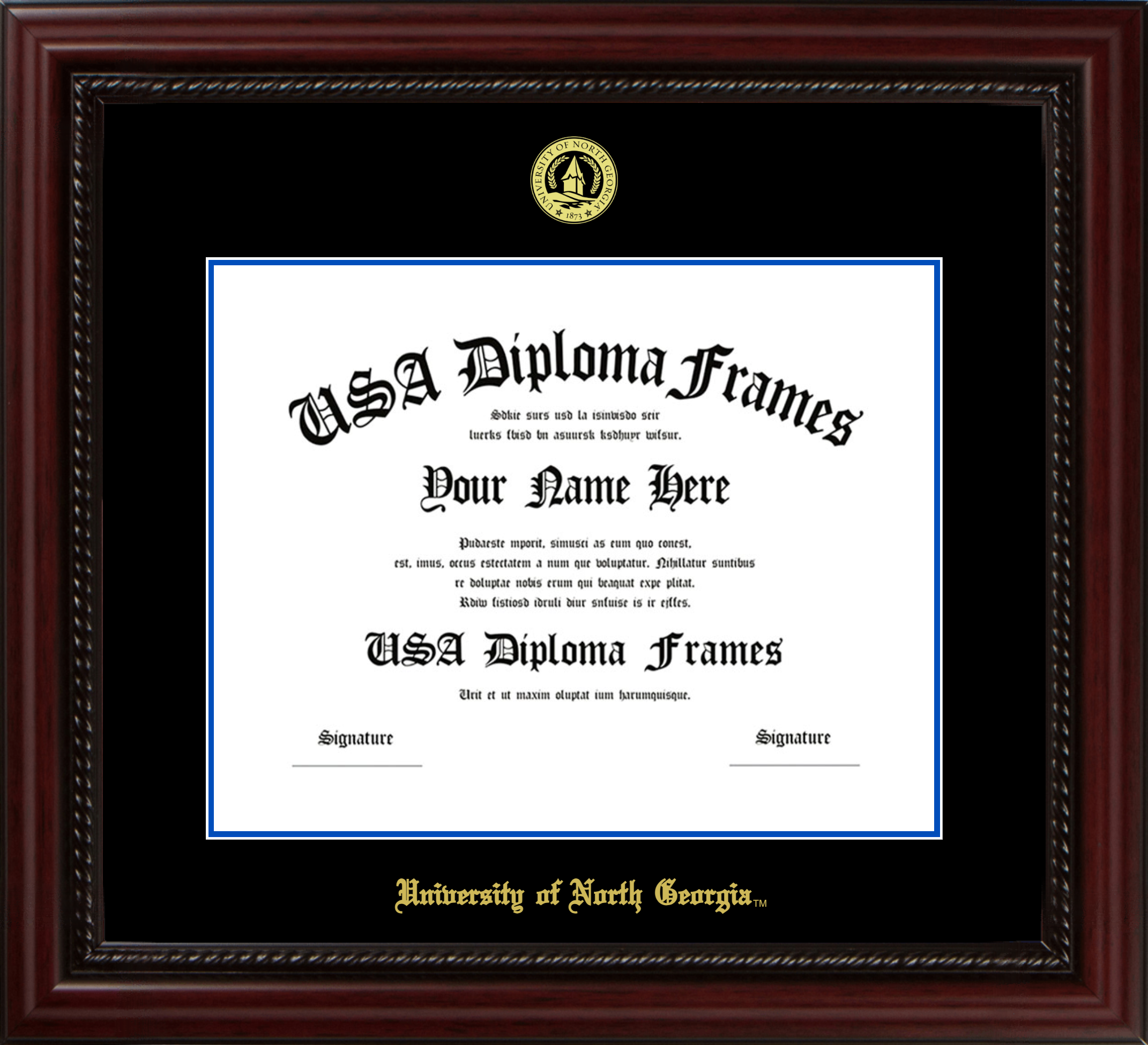 University of North Georgia Diploma Frame – Executive Cherry Rope – Black and Royal Blue Mat