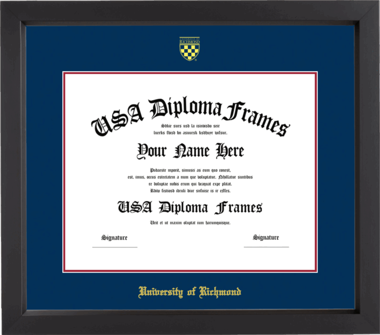 Want to explore more styles? Browse our full range of diploma frame layouts, or visit the University of Richmond to view options available for your school. Looking for a fully personalized design? Try our custom Frame Builder and create a frame that’s uniquely yours.