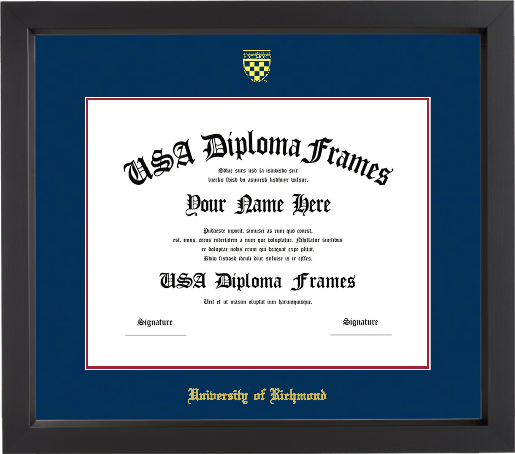 University of Richmond Diploma Frame – Black Matte – Navy and Crimson Mat