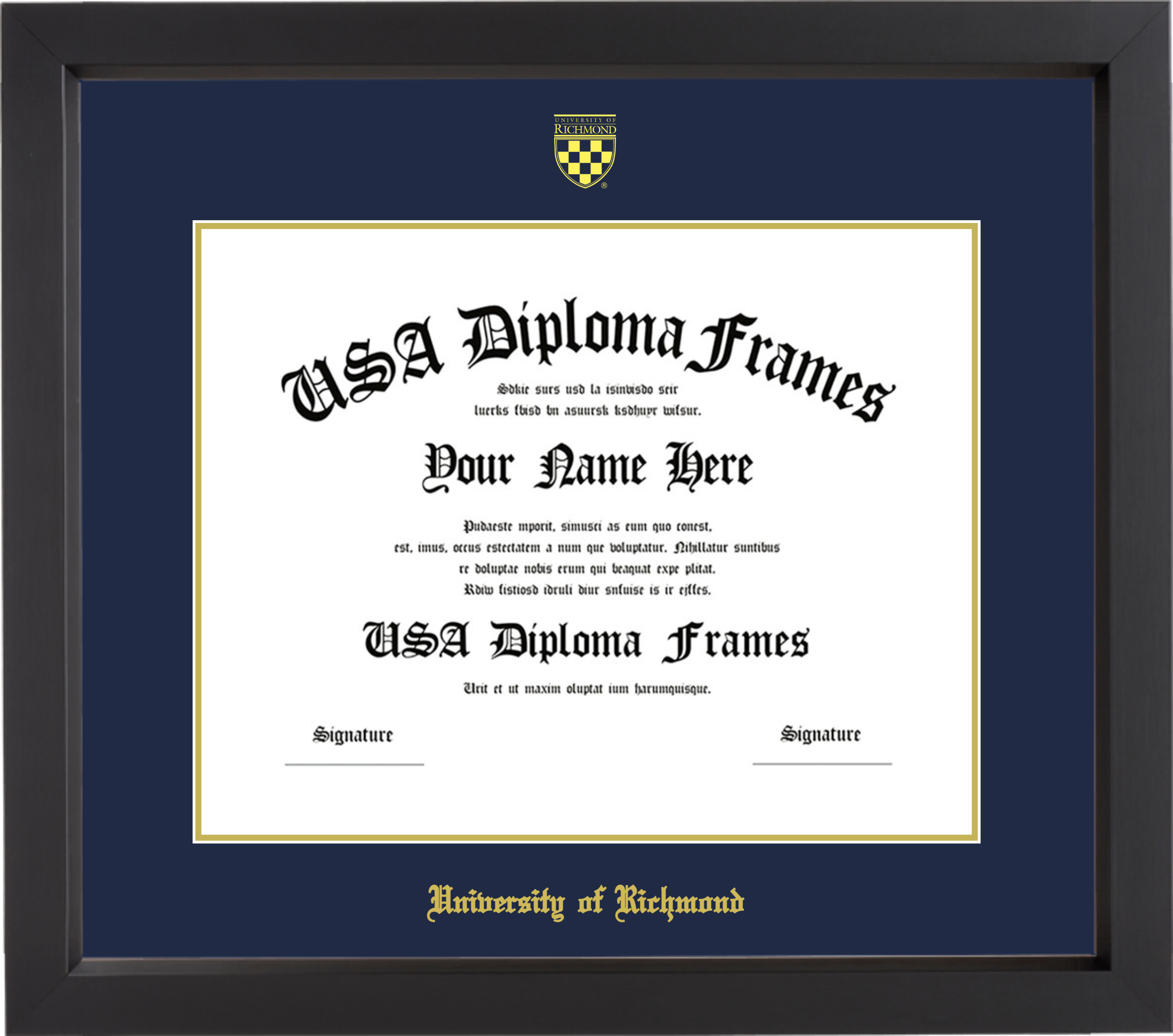 University of Richmond – Single Horizontal Document ( Diploma ) – Black Matte – Navy Mat – Gold Accent Mat – With Seal(University Seal Gold) – With Gold Embossing (University of Richmond)
