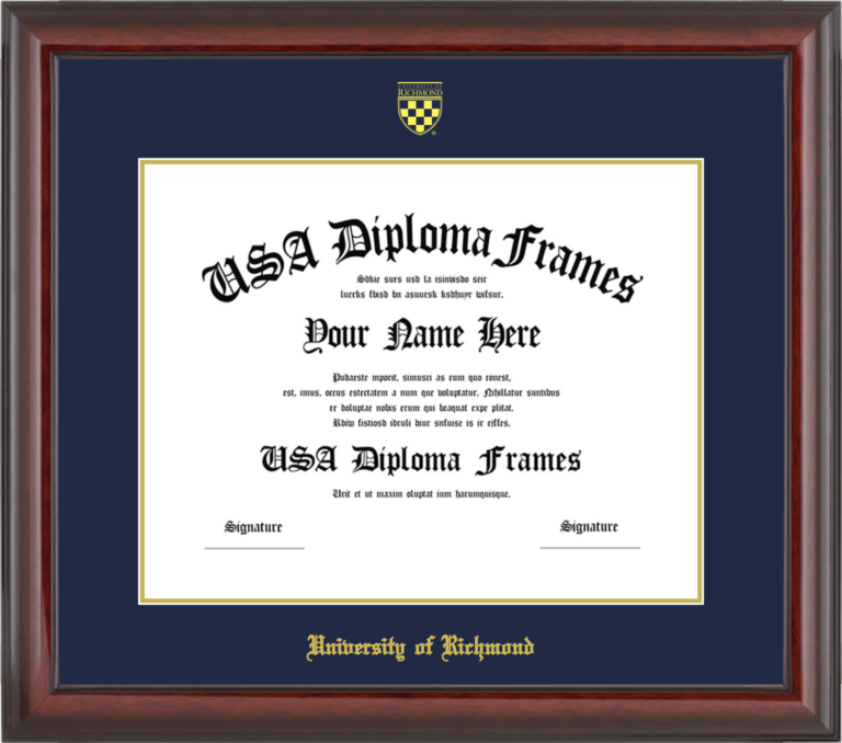 Want to explore more styles? Browse our full range of diploma frame layouts, or visit the University of Richmond to view options available for your school. Looking for a fully personalized design? Try our custom Frame Builder and create a frame that’s uniquely yours.