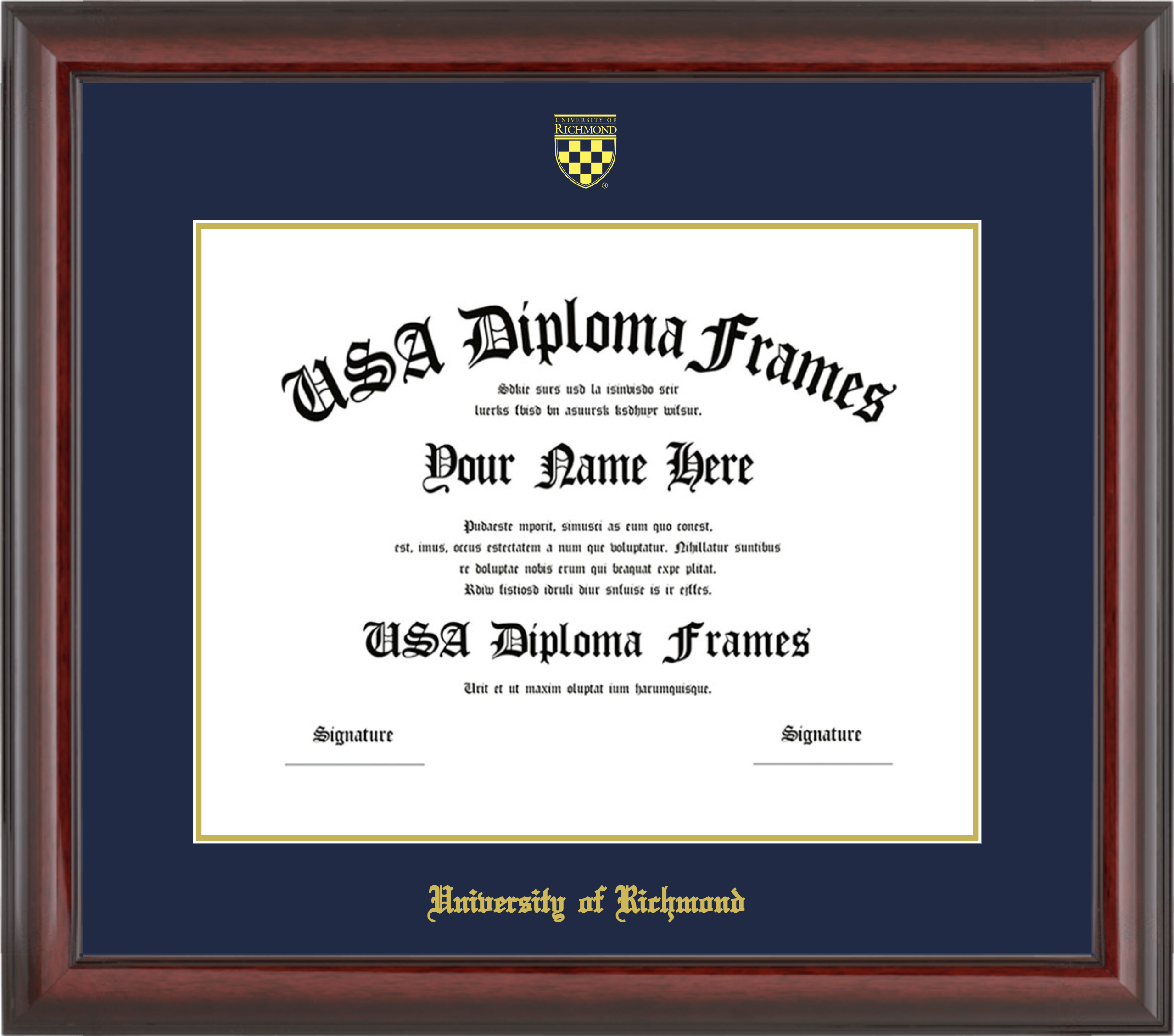 University of Richmond – Single Horizontal Document ( Diploma ) – Cherry Mahogany Glossy – Navy Mat – Gold Accent Mat – With Seal(University Seal Gold) – With Gold Embossing (University of Richmond)