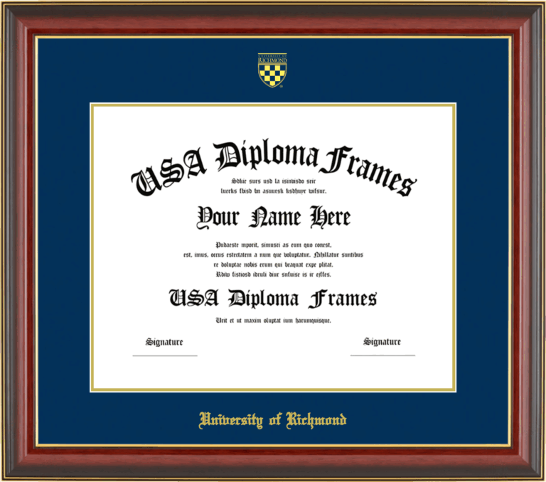 Want to explore more styles? Browse our full range of diploma frame layouts, or visit the University of Richmond to view options available for your school. Looking for a fully personalized design? Try our custom Frame Builder and create a frame that’s uniquely yours.