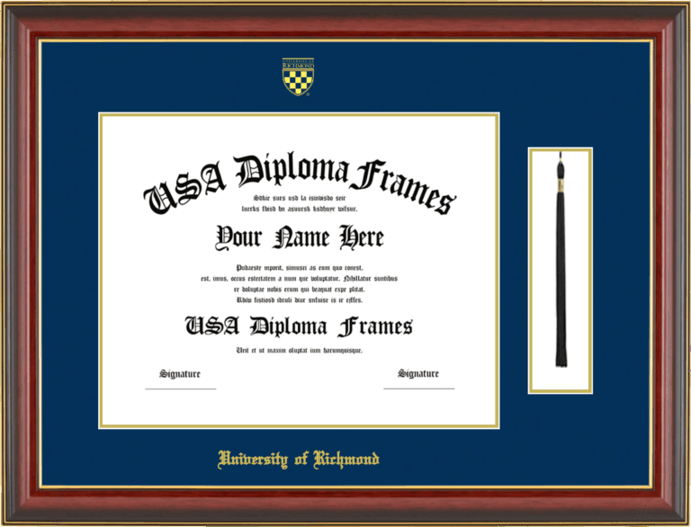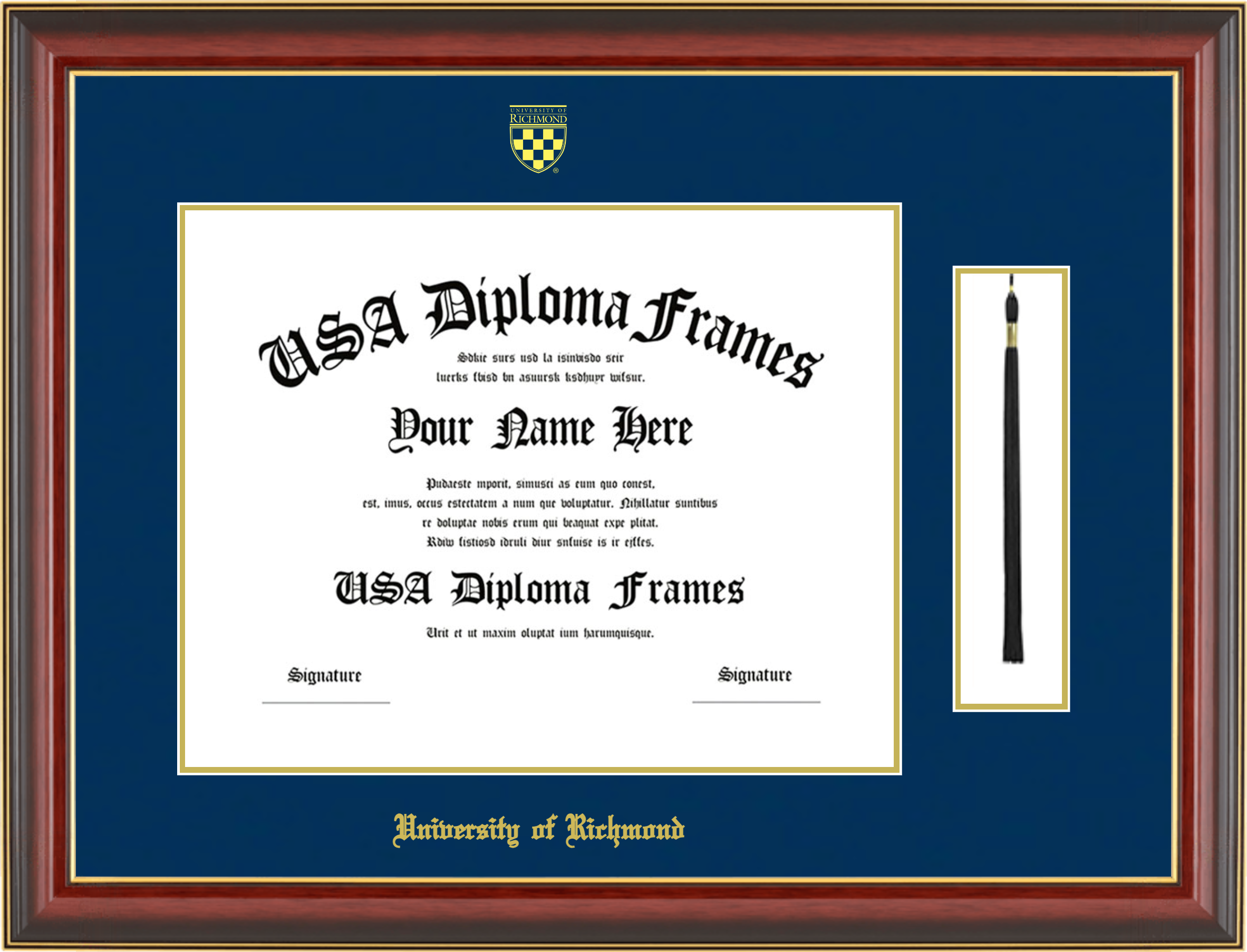 University of Richmond Diploma Frame with Tassel – Cherry Mahogany Gold Trim Glossy – Navy and Gold Mat