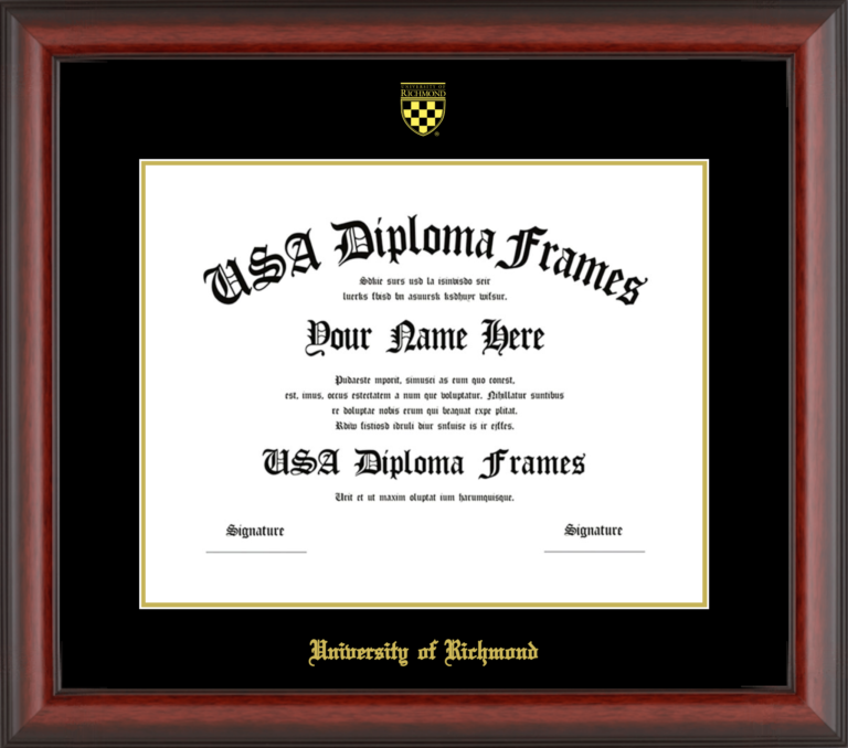 Want to explore more styles? Browse our full range of diploma frame layouts, or visit the University of Richmond to view options available for your school. Looking for a fully personalized design? Try our custom Frame Builder and create a frame that’s uniquely yours.