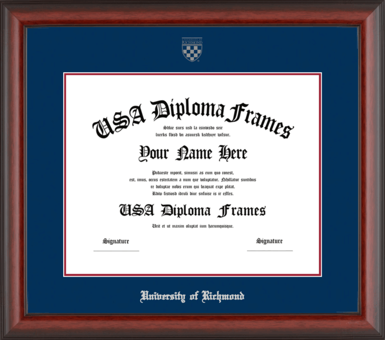 Want to explore more styles? Browse our full range of diploma frame layouts, or visit the University of Richmond to view options available for your school. Looking for a fully personalized design? Try our custom Frame Builder and create a frame that’s uniquely yours.