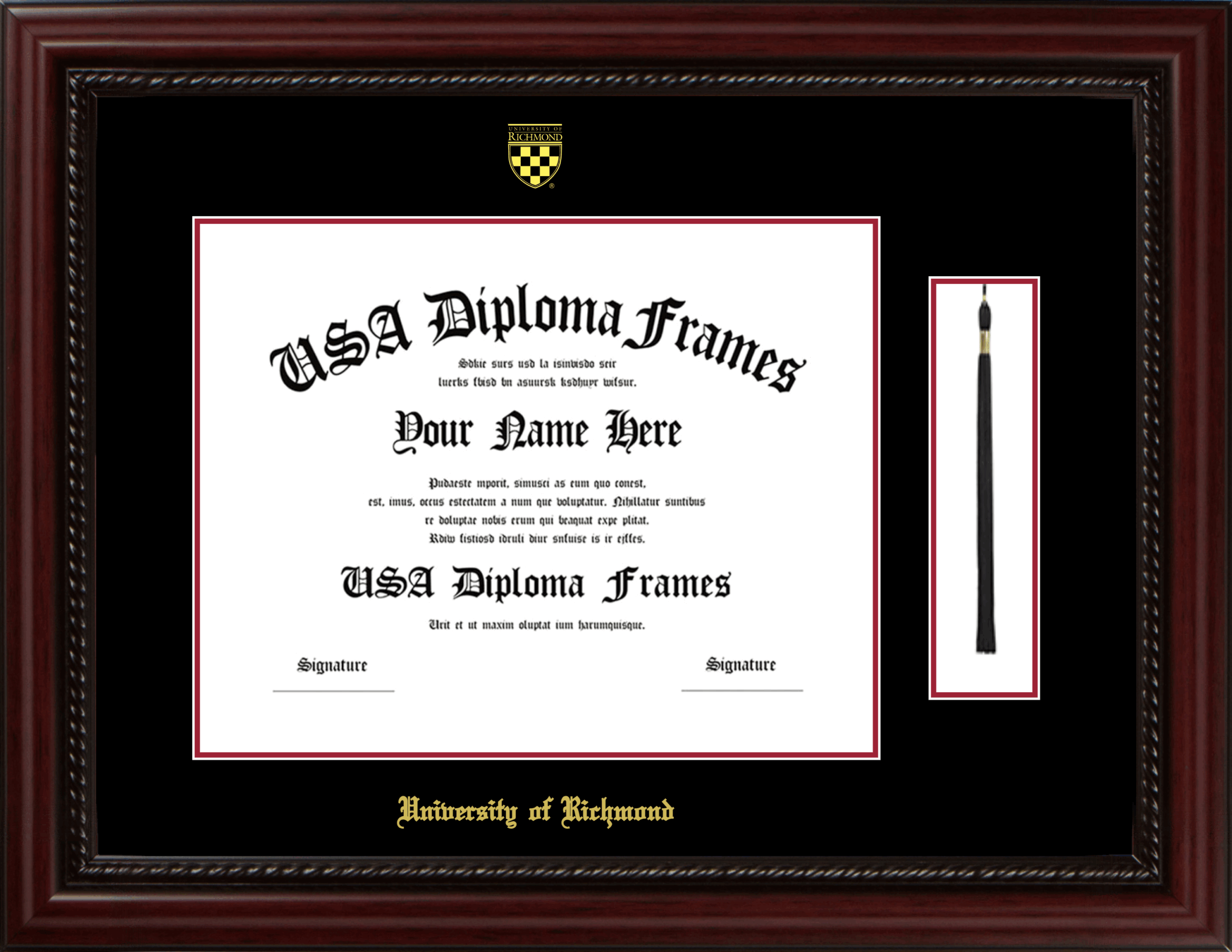 University of Richmond Diploma Frame with Tassel – Executive Cherry Rope – Black and Crimson Mat