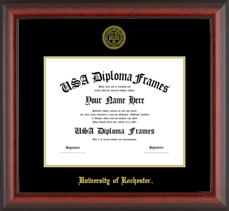 University of Rochester Diploma Frame – Cherry Mahogany Matte – Black and Gold Mat
