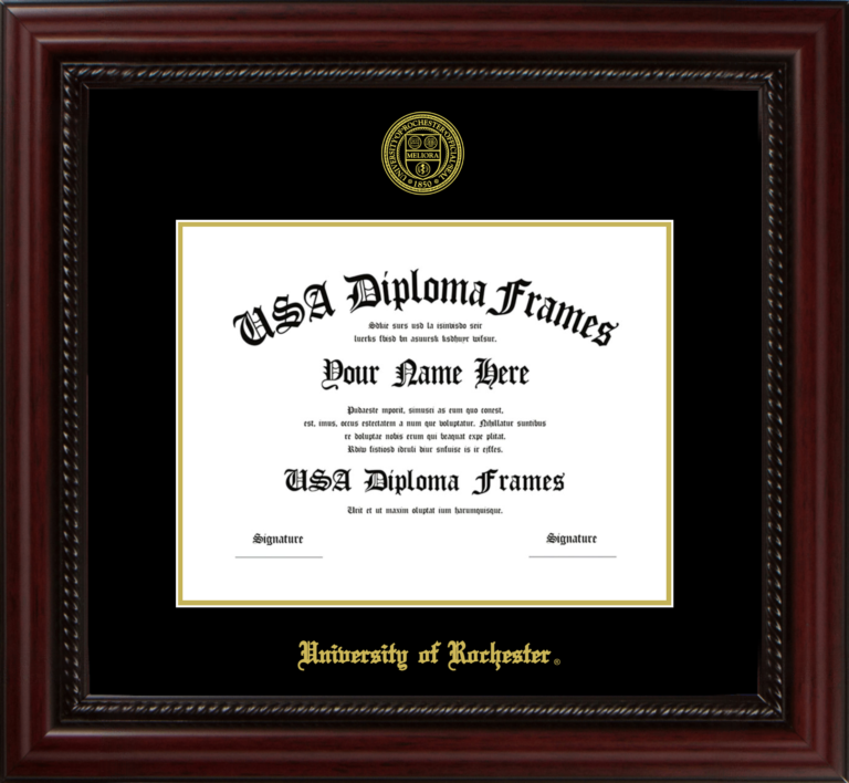 Want to explore more styles? Browse our full range of diploma frame layouts, or visit the University of Rochester to view options available for your school. Looking for a fully personalized design? Try our custom Frame Builder and create a frame that’s uniquely yours.