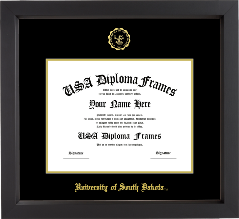 University of South Dakota Diploma Frame – Black Matte – Black and Gold Mat