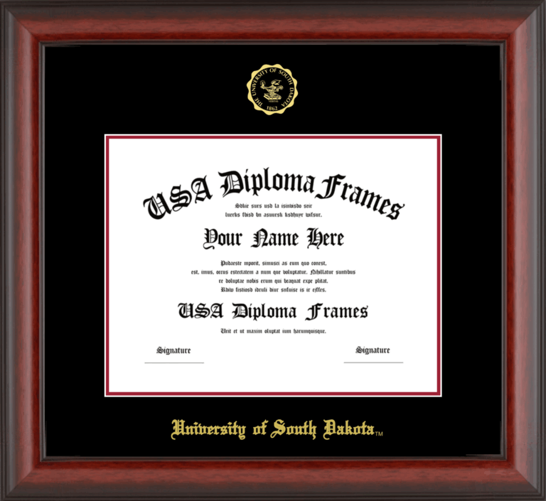 Want to explore more styles? Browse our full range of diploma frame layouts, or visit the University of South Dakota to view options available for your school. Looking for a fully personalized design? Try our custom Frame Builder and create a frame that’s uniquely yours.