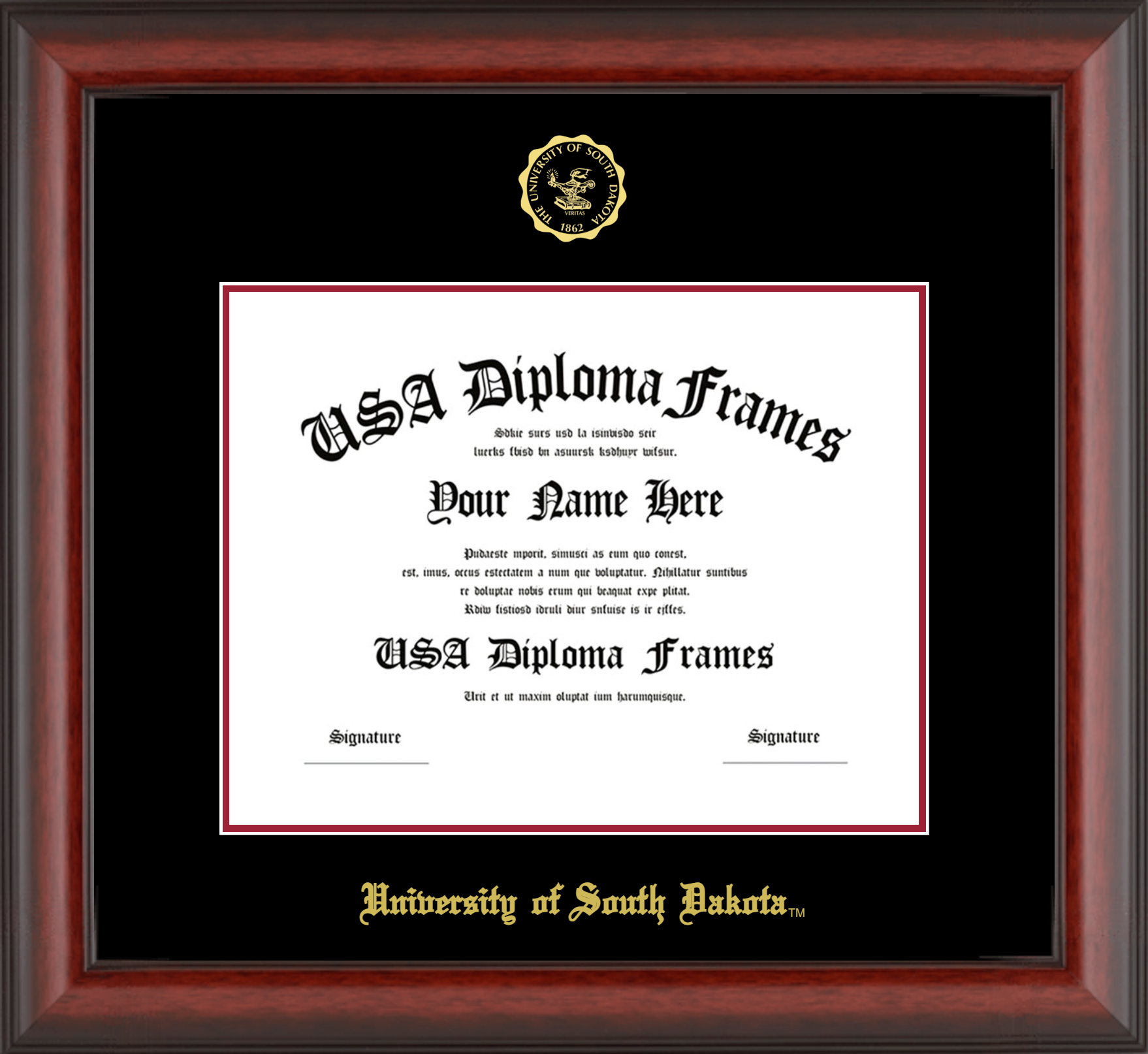 University of South Dakota Diploma Frame – Cherry Mahogany Matte – Black and Crimson Mat