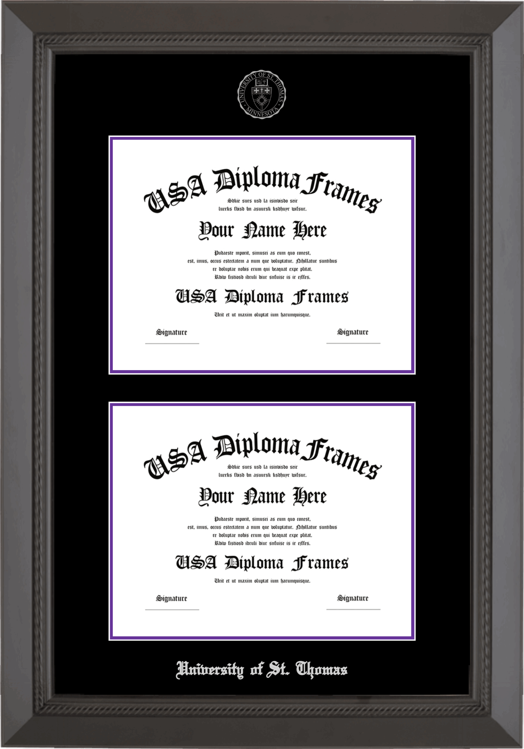University of St. Thomas Double Diploma Frame – Double Document – Black Rope – Black and Purple Mat