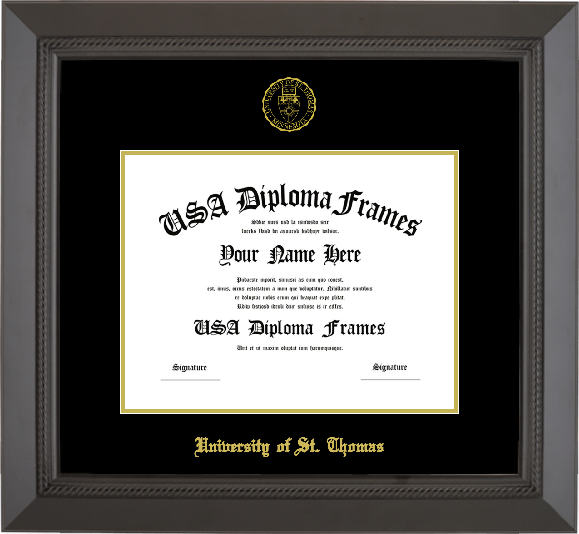 University of St. Thomas Diploma Frame – Black Rope – Black and Gold Mat