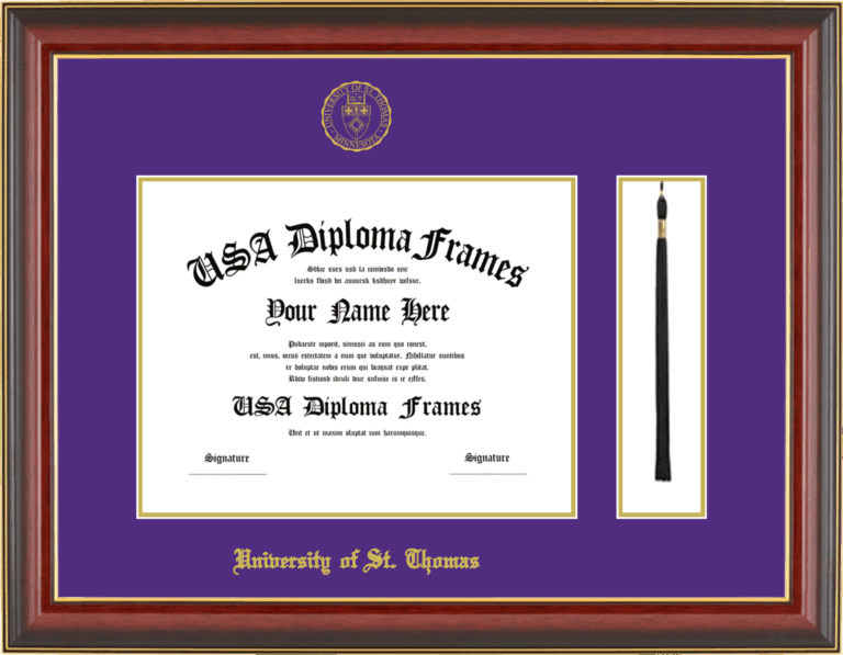 University of St. Thomas Diploma Frame with Tassel – Cherry Mahogany Gold Trim Glossy – Purple and Gold Mat