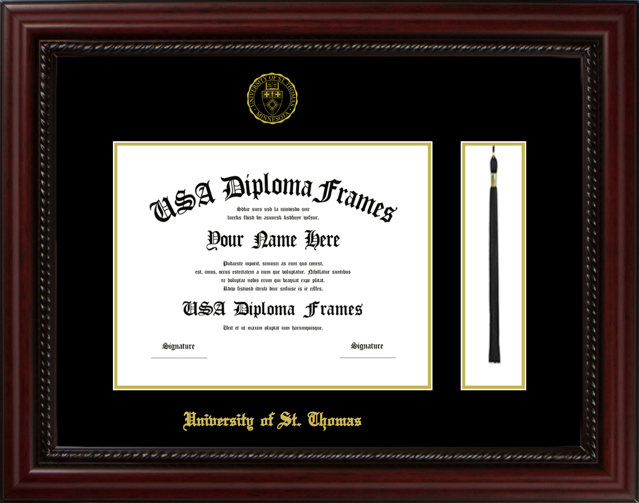 University of St. Thomas Diploma Frame with Tassel – Executive Cherry Rope – Black and Gold Mat