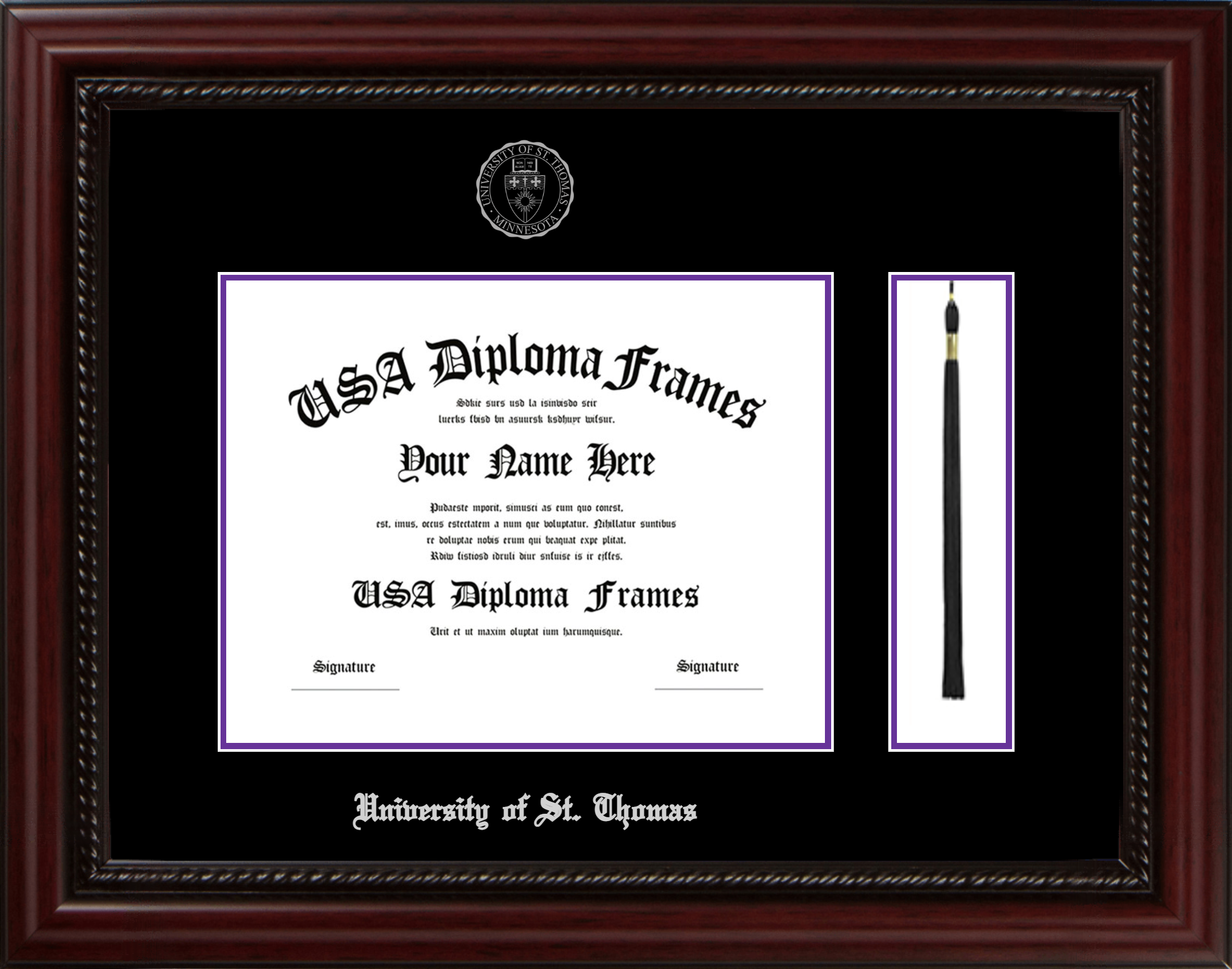 University of St. Thomas Diploma Frame with Tassel – Executive Cherry Rope – Black and Purple Mat – Silver Seal