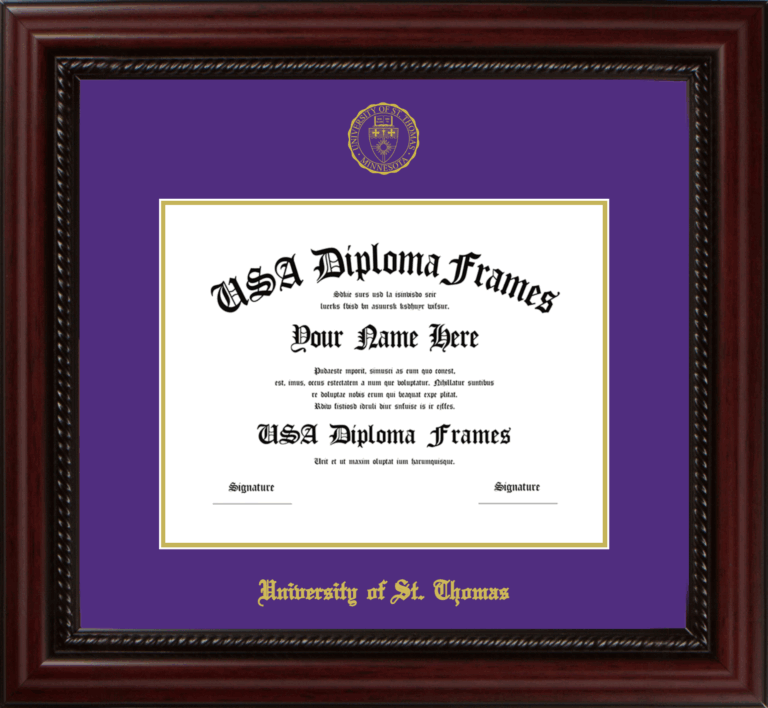 University of St. Thomas Diploma Frame – Executive Cherry Rope – Purple and Gold Mat