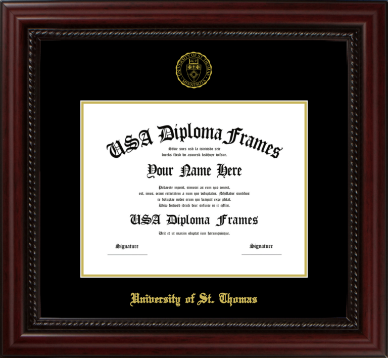 University of St. Thomas Diploma Frame – Executive Cherry Rope – Black and Gold Mat