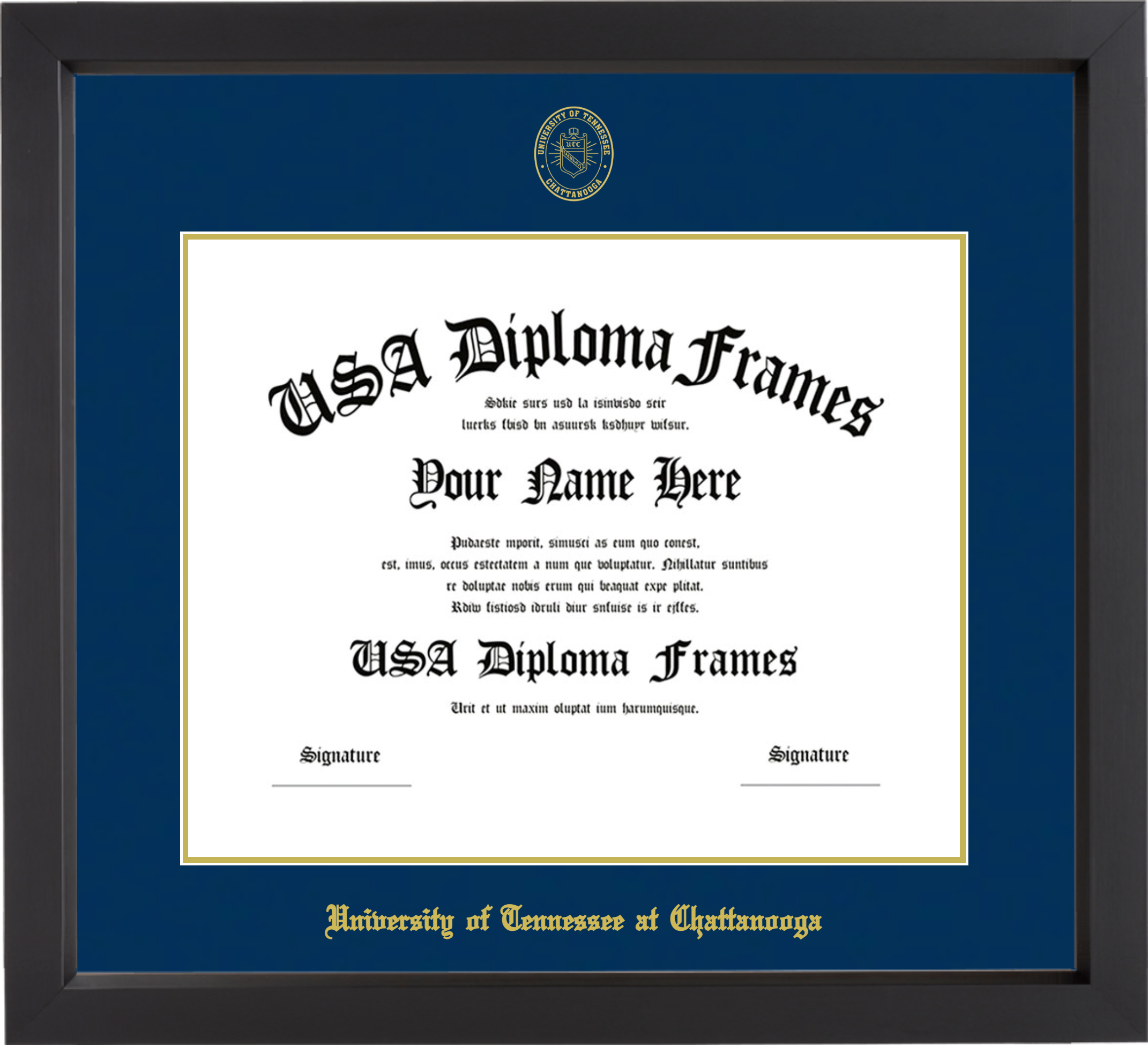 University of Tennessee at Chattanooga Diploma Frame – Black Matte – Navy and Gold Mat- 12×15