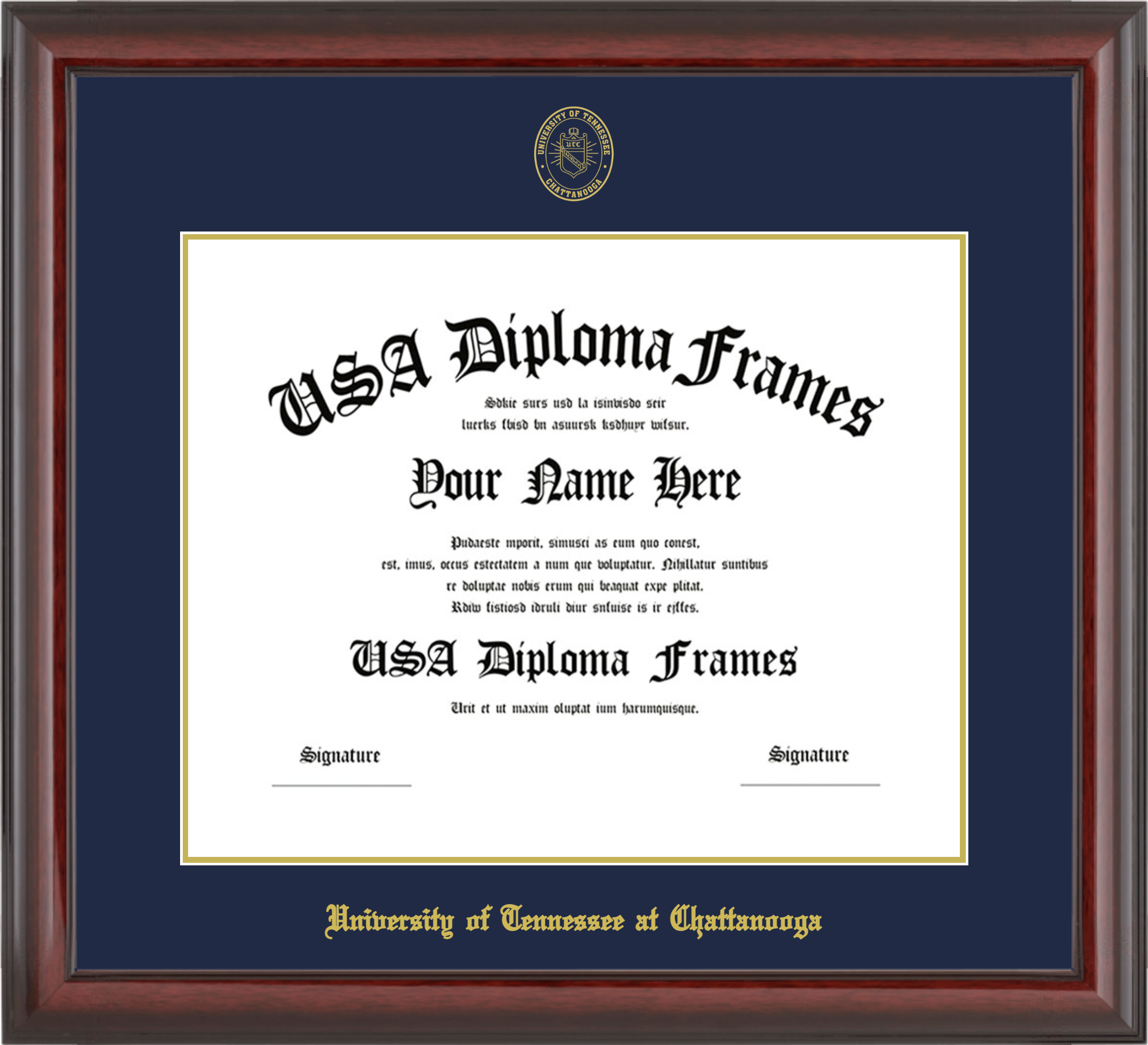 University of Tennessee at Chattanooga – Single Horizontal Document ( Bachelors/Masters ) – Cherry Mahogany Glossy – Navy Mat – Gold Accent Mat – With Seal(University Seal Gold) – With Gold Embossing (University of Tennessee at Chattanooga)