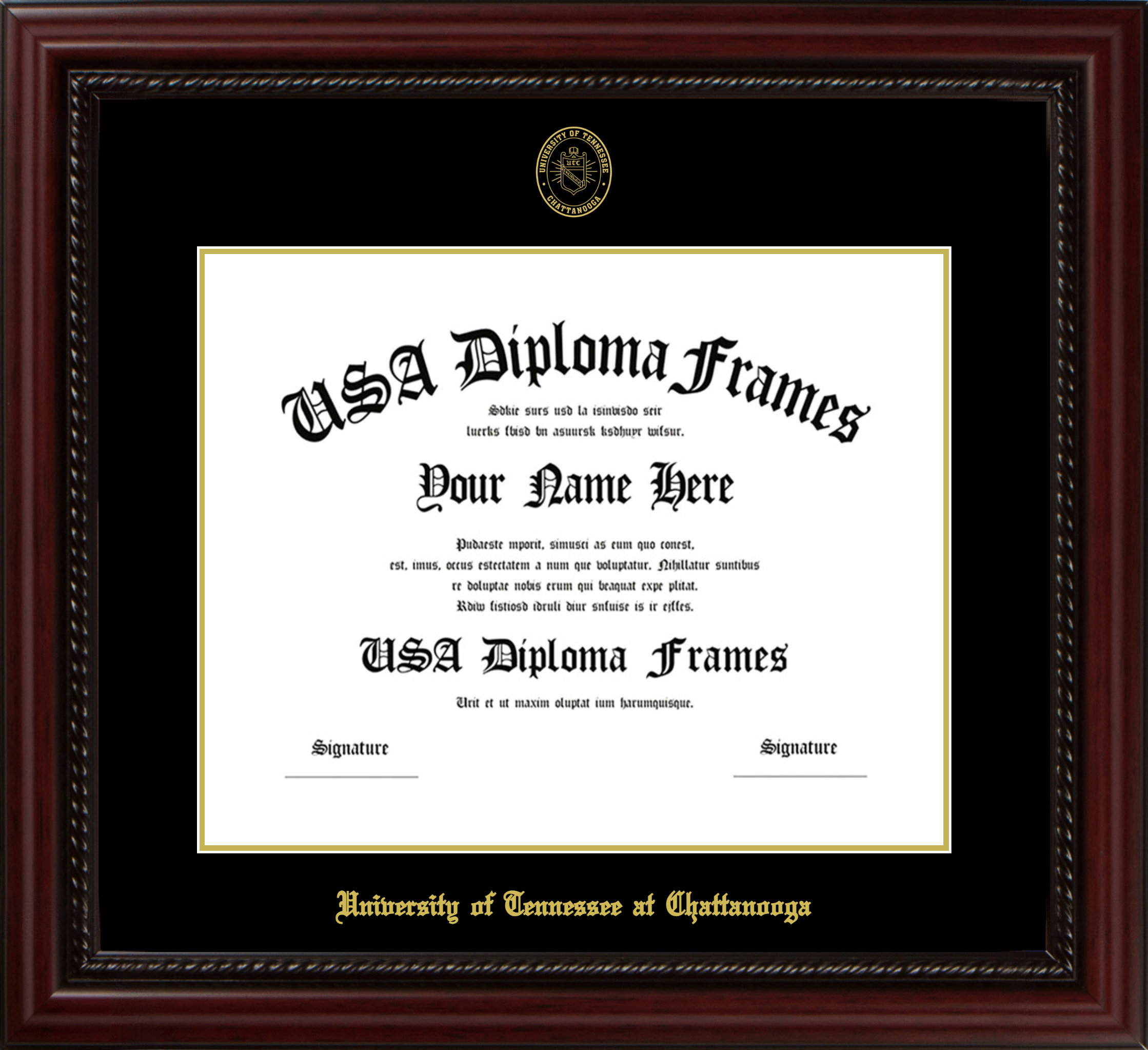 University of Tennessee at Chattanooga Diploma Frame – Executive Cherry Rope – Black and Gold Mat