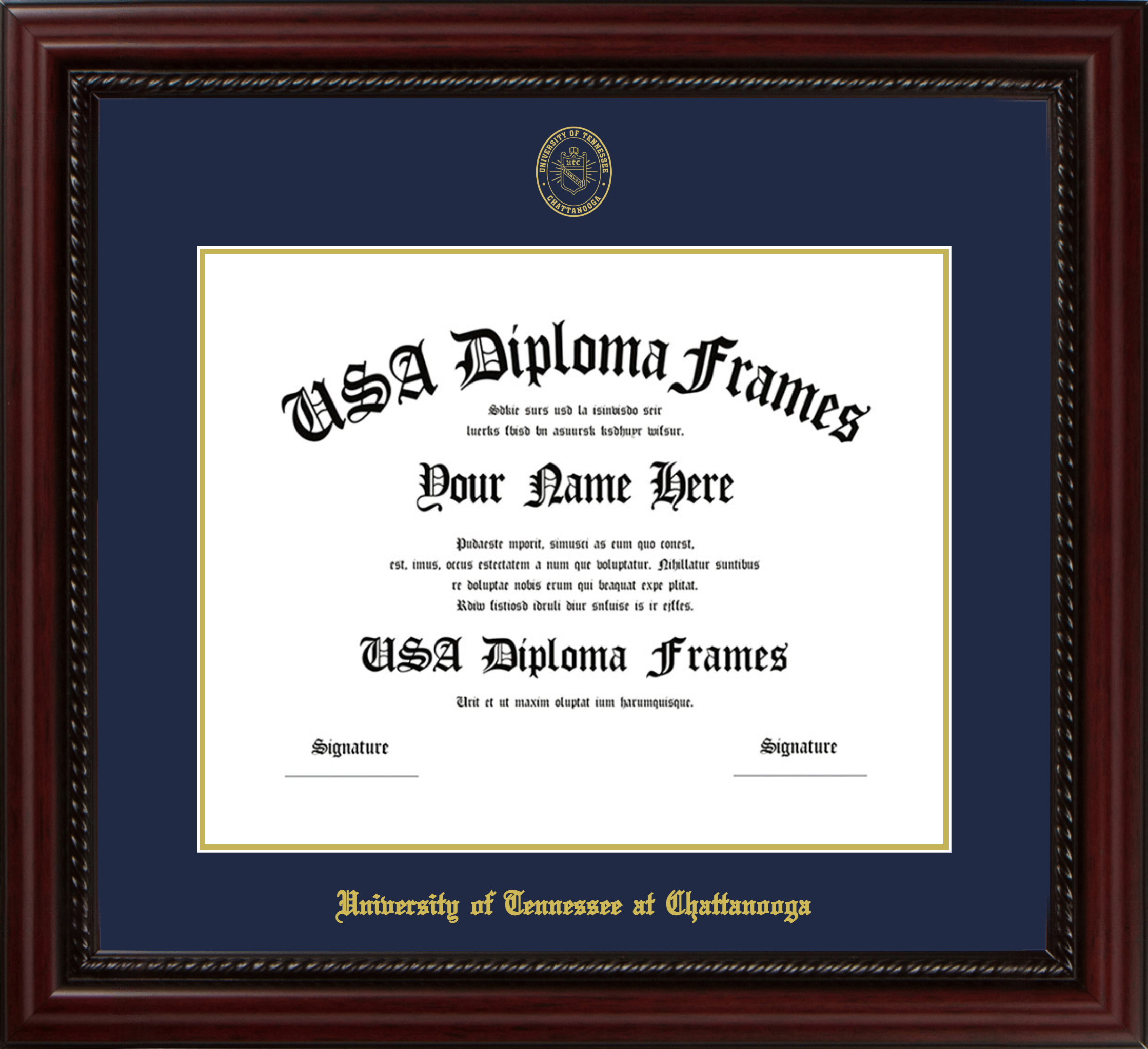 University of Tennessee at Chattanooga – Single Horizontal Document ( Bachelors/Masters ) – Executive Cherry Rope – Navy Mat – Gold Accent Mat – With Seal(University Seal Gold) – With Gold Embossing (University of Tennessee at Chattanooga)
