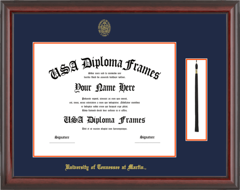 Want to explore more styles? Browse our full range of diploma frame layouts, or visit the University of Tennessee at Martin to view options available for your school. Looking for a fully personalized design? Try our custom Frame Builder and create a frame that’s uniquely yours.