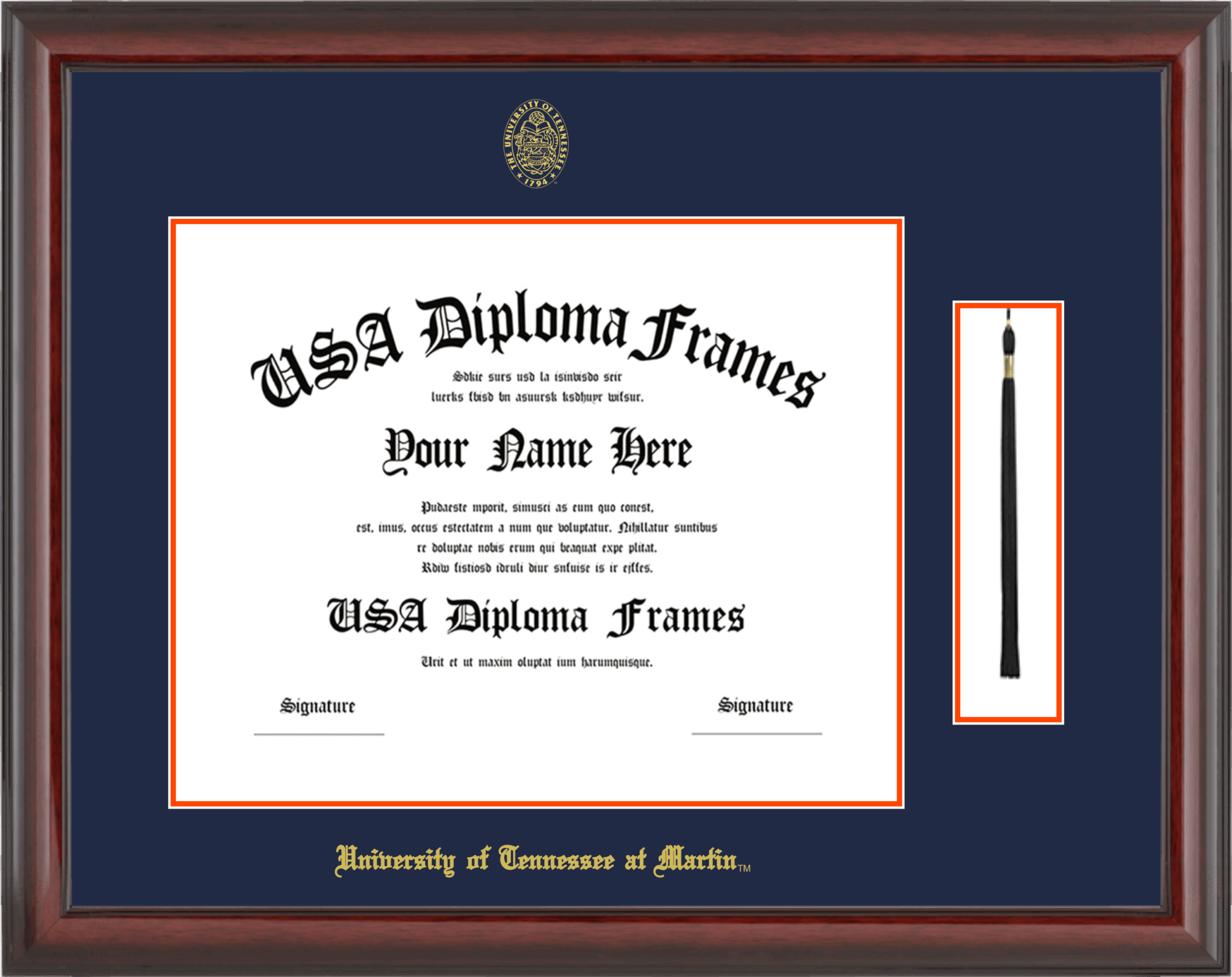 University of Tennessee at Martin Diploma Frame with Tassel – Cherry Mahogany Glossy – Navy and Orange Mat