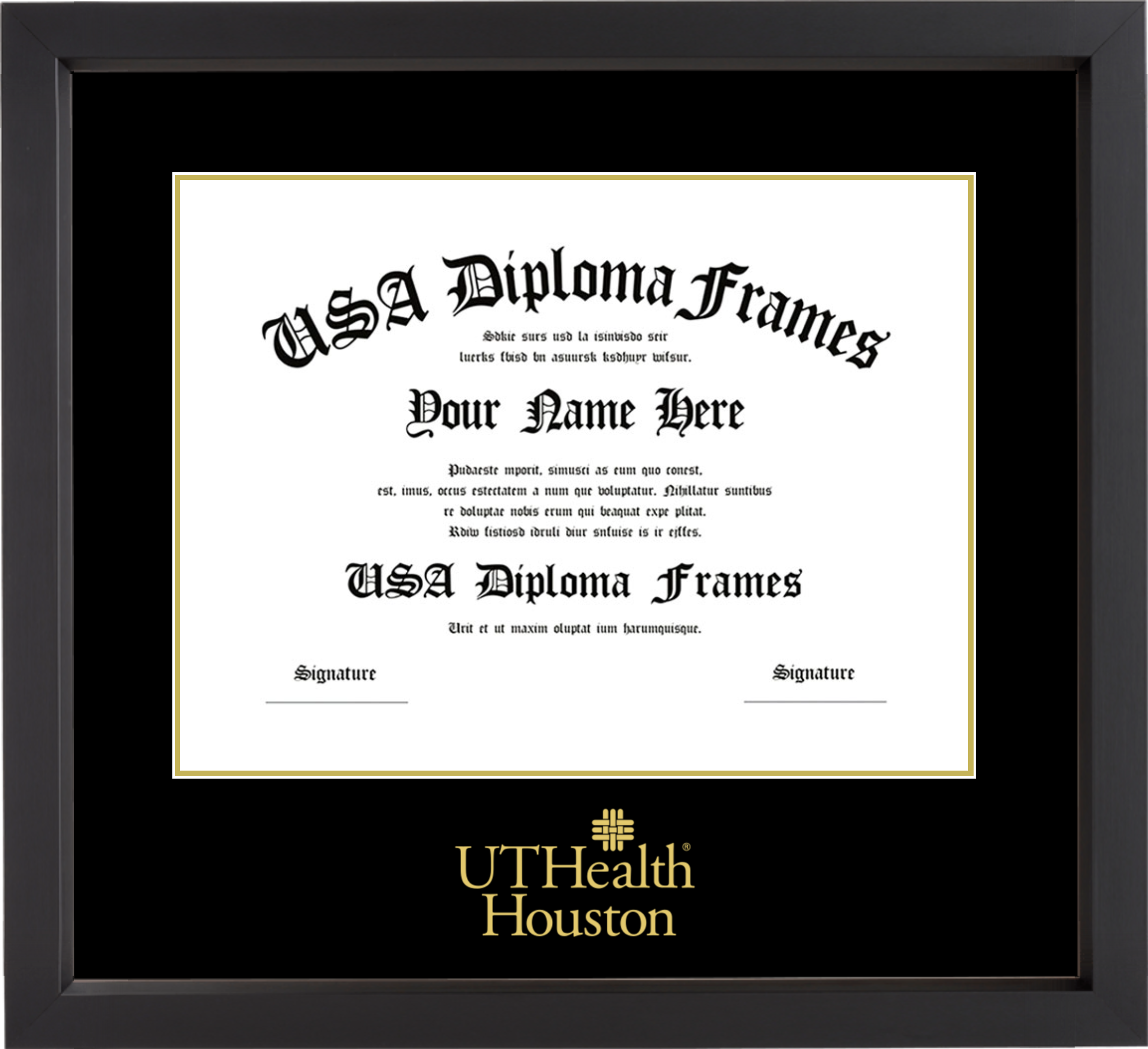 University of Texas Health Science Center at Houston – Single Horizontal Document ( Diploma ) – Black Matte – Black Mat – Gold Accent Mat – With Image Embossing(Gold)