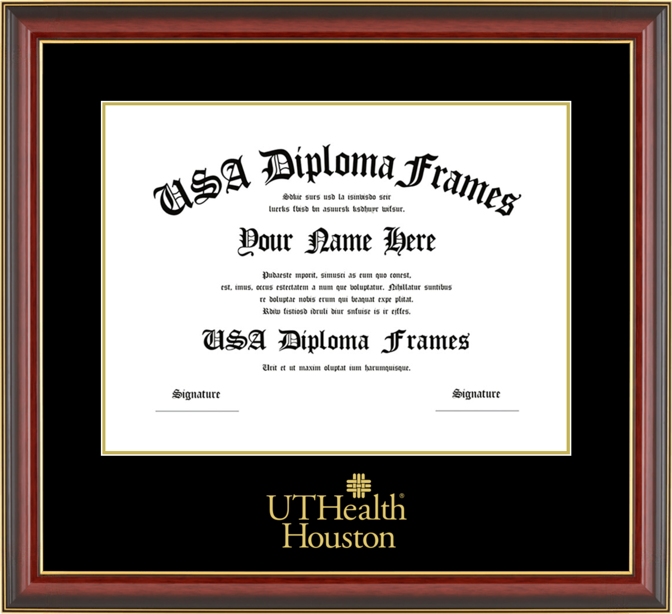University of Texas Health Science Center at Houston – Single Horizontal Document ( Diploma ) – Cherry Mahogany Gold Trim Glossy – Black Mat – Gold Accent Mat – With Image Embossing(Gold)
