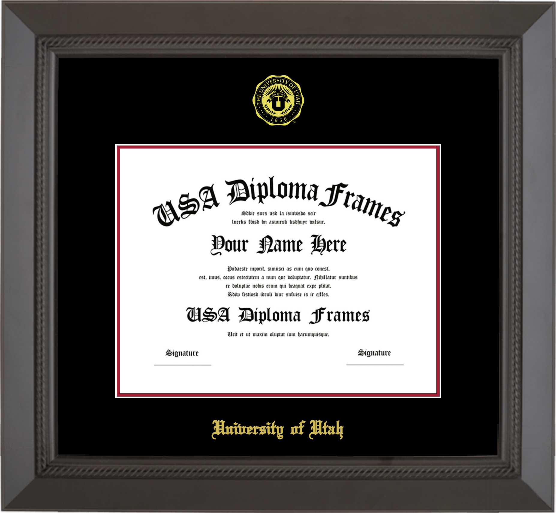 University of Utah Diploma Frame – Black Rope – Black and Crimson Mat